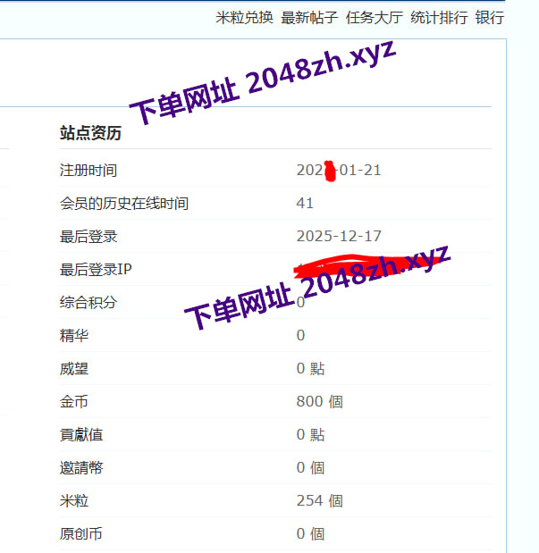 2048论坛米粒成品 自带500米粒 少量金币